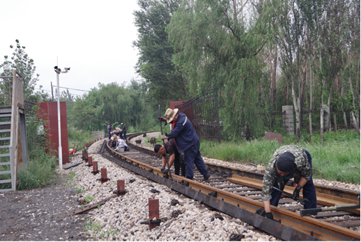 鐵路專線全長1730米,全部維修、維護(hù)工作都由工務(wù)組十幾名工人完成,此次維修工作,不僅要保證列車通行安全,而且還要節(jié)約成本,要讓每根鋼軌、每個(gè)螺絲釘都發(fā)揮它有效作用。一條鋼軌重達(dá)1噸,更換工作全部由人工完成,而此次更換的鋼軌,曲徑彎度特別大,更換難度可想而知,在此困難情況下,工人們表現(xiàn)出極大耐心、細(xì)心,用他們嫻熟的技藝,提前半小時(shí)出色地完成更換搶修工作,保證了列車正常通行。
