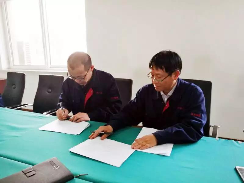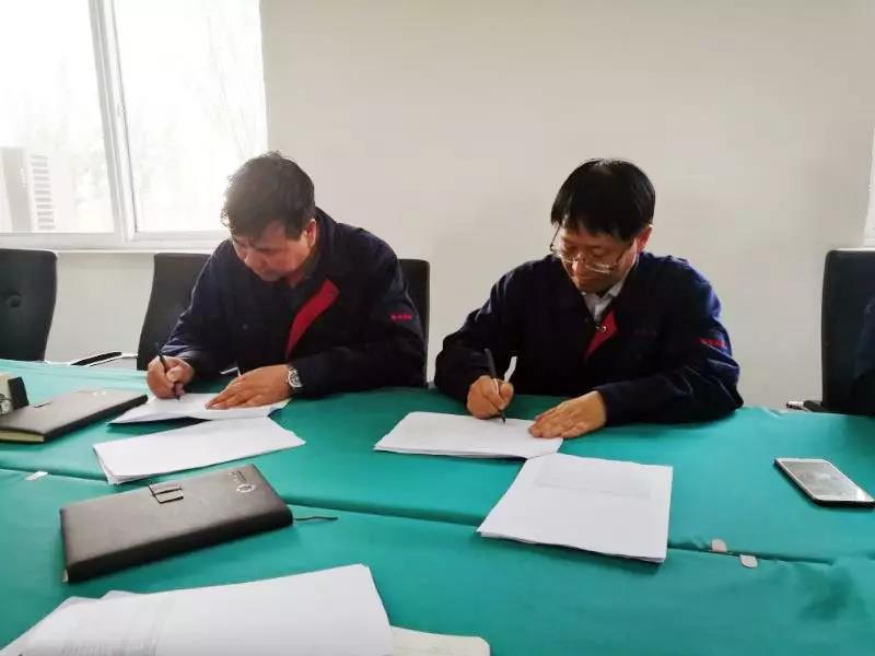 企管部部長張志強(qiáng)宣解方案并代表公司與各廠廠長在經(jīng)濟(jì)責(zé)任制上簽字。
